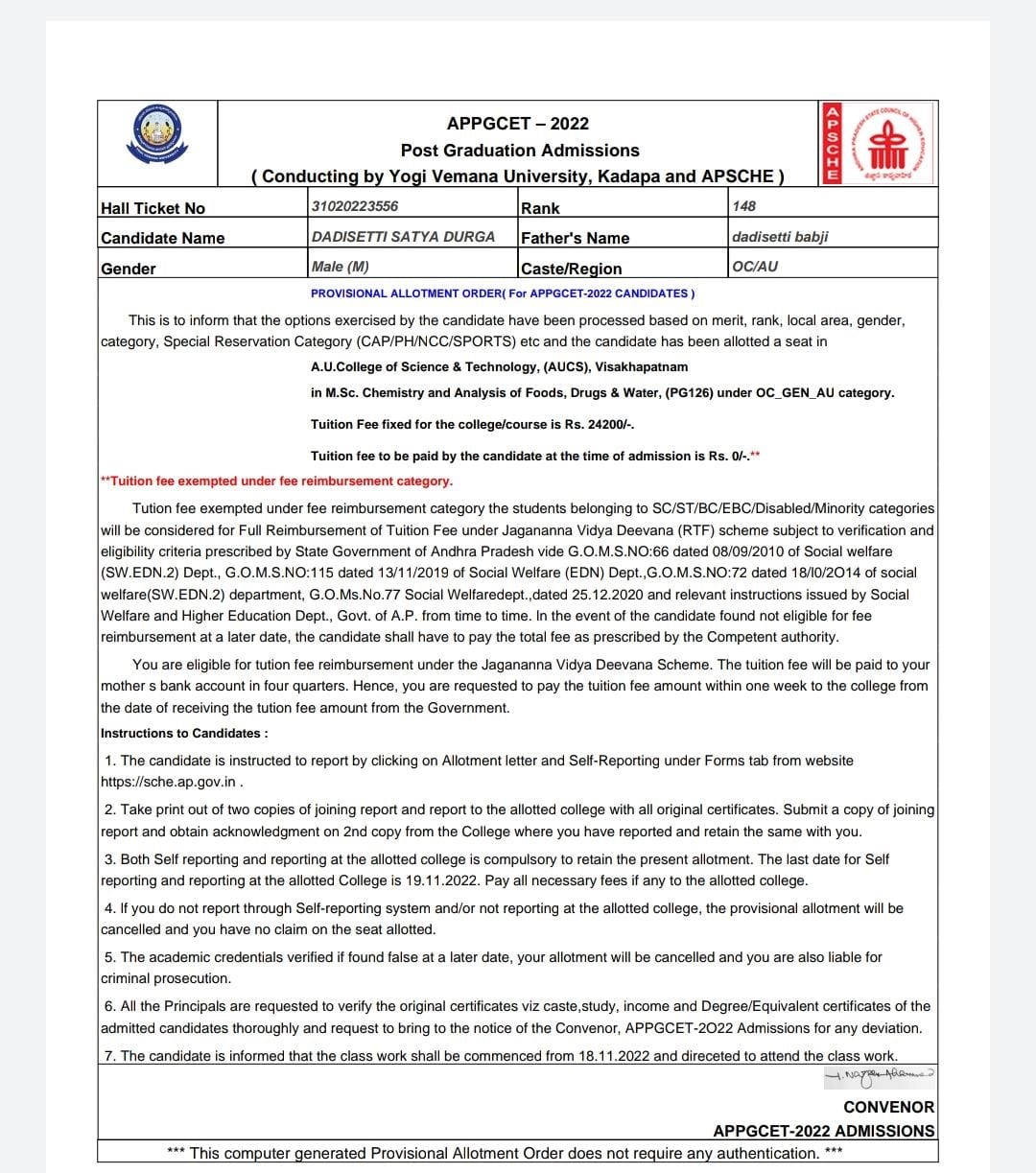 School of Distance education, A.U,VSKP |