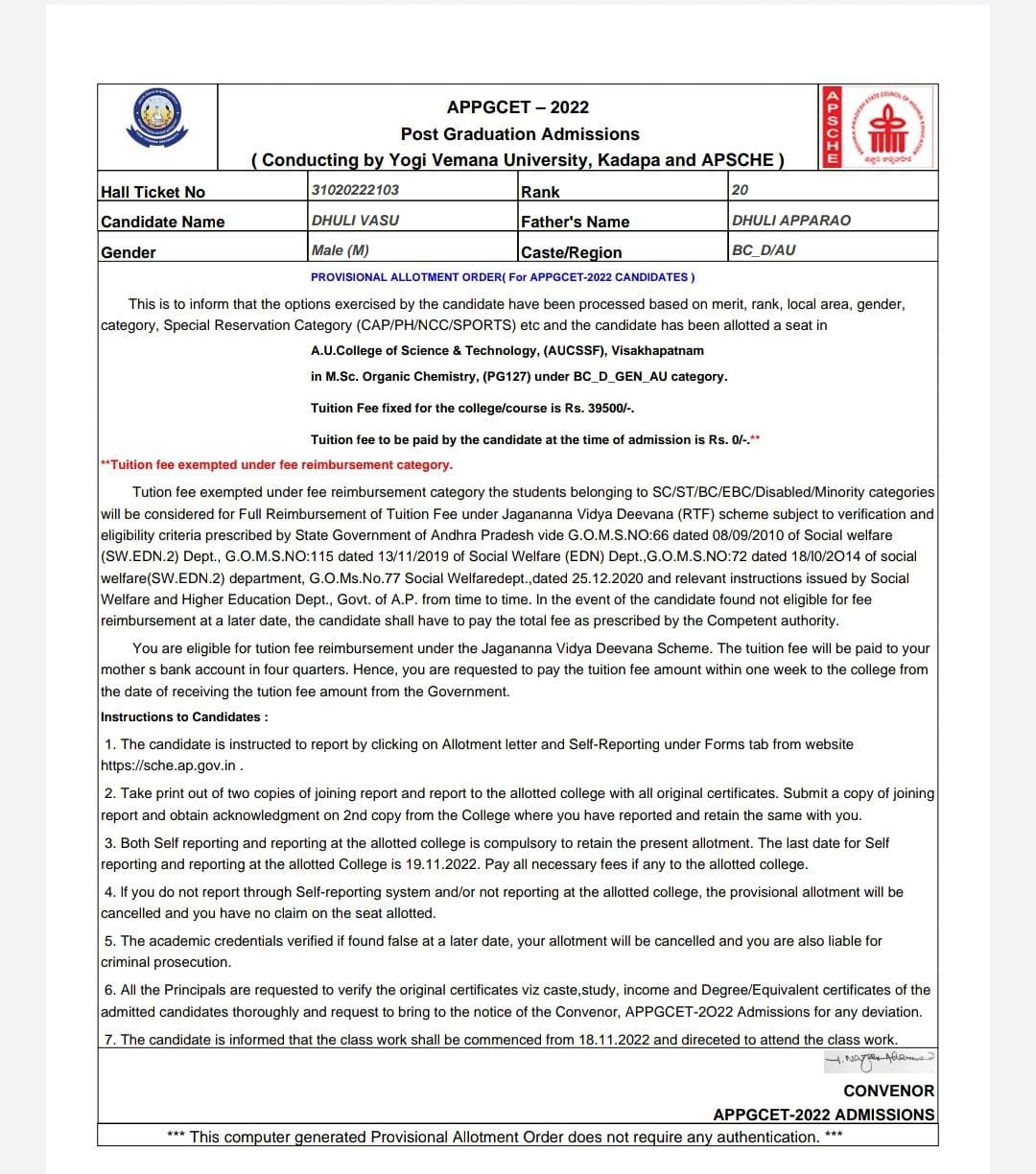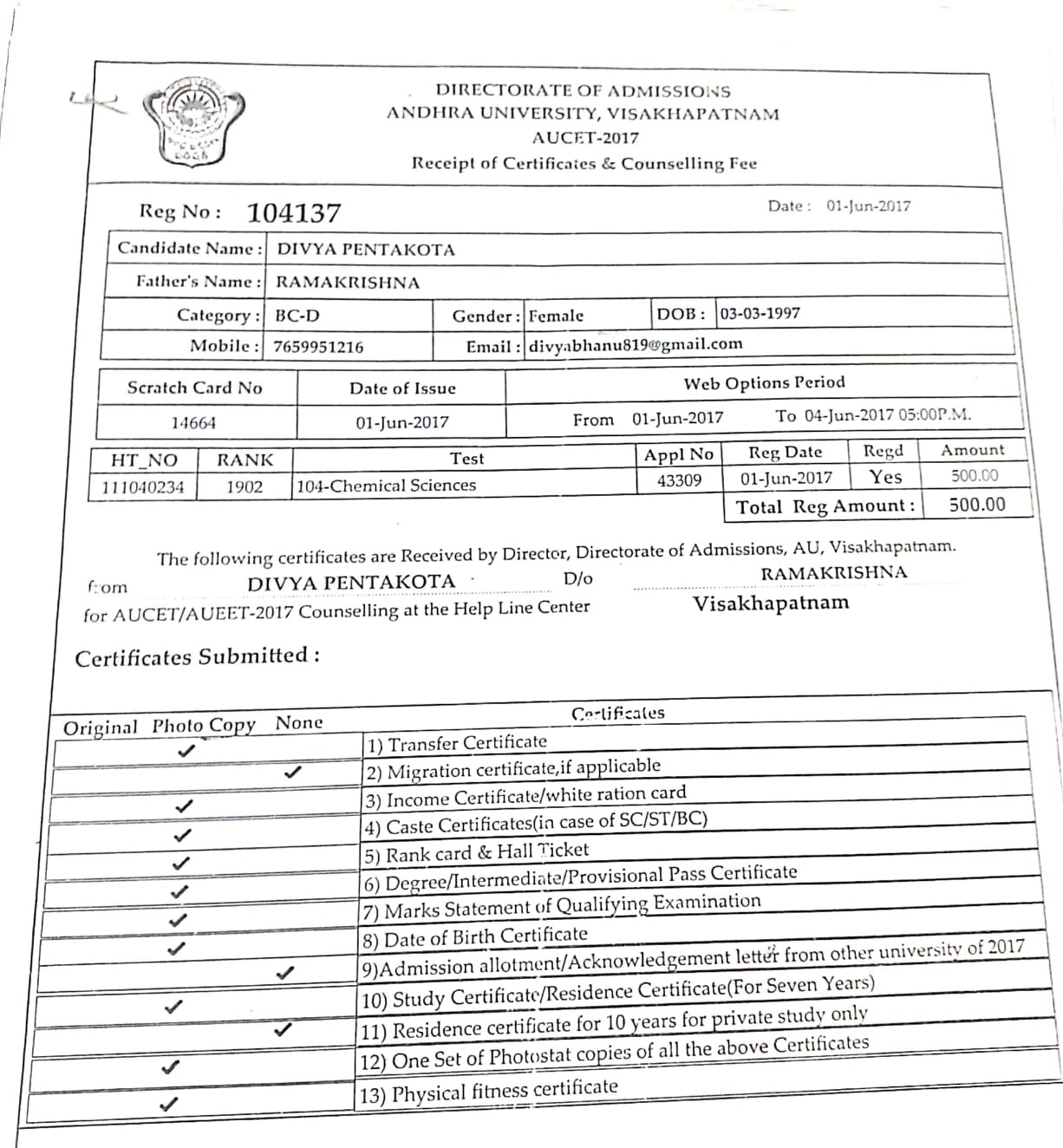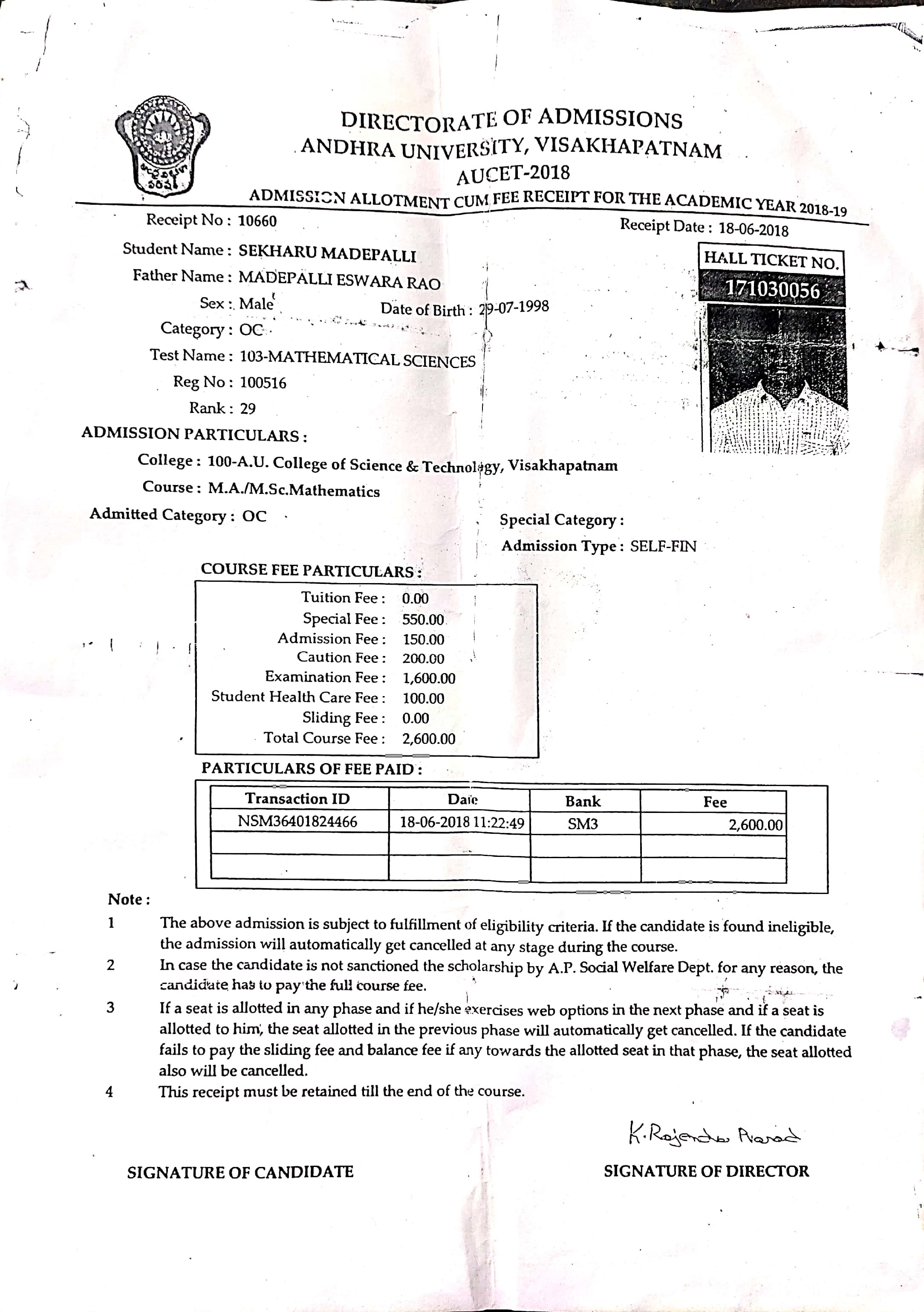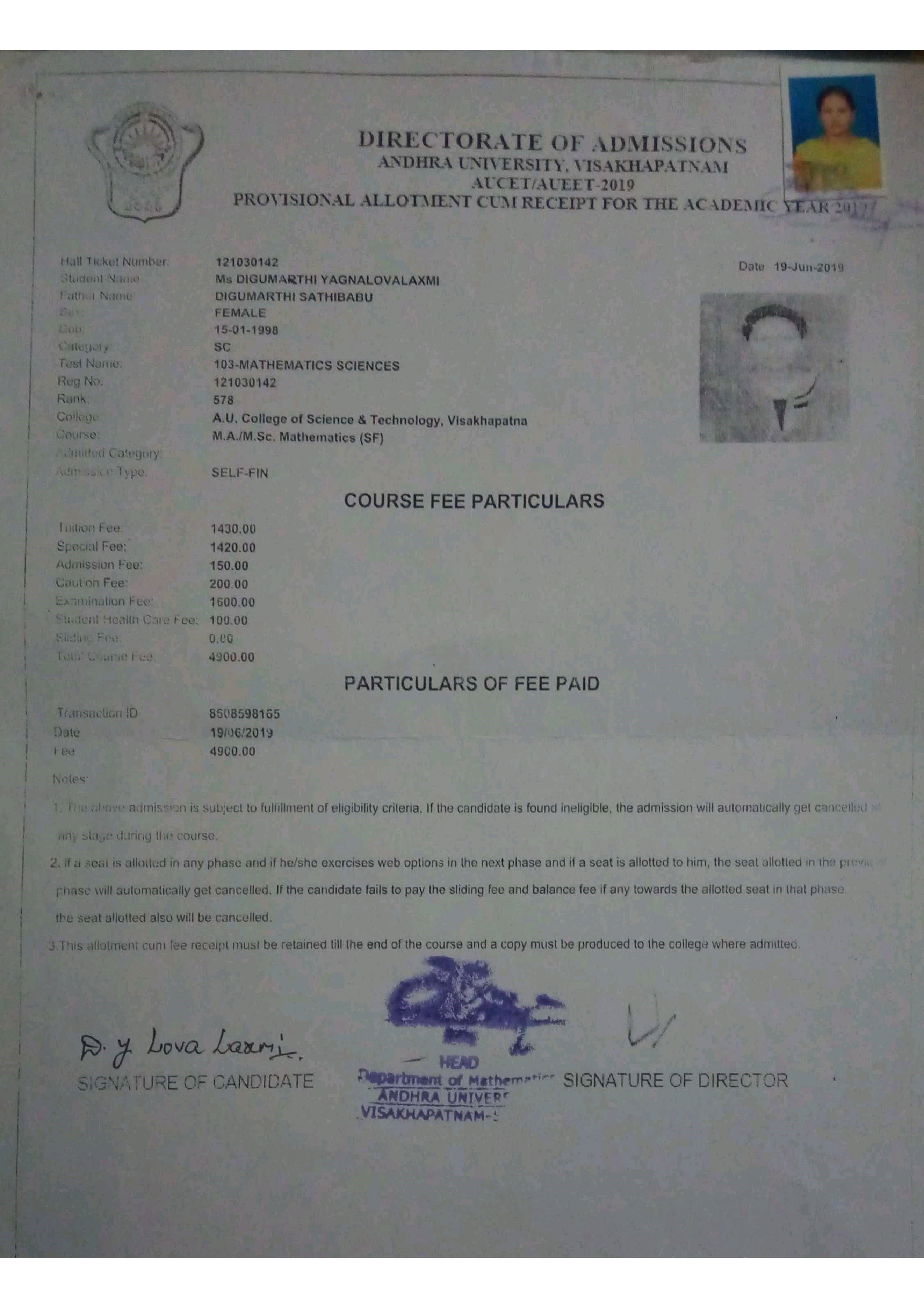 Andhra University,VSKP |