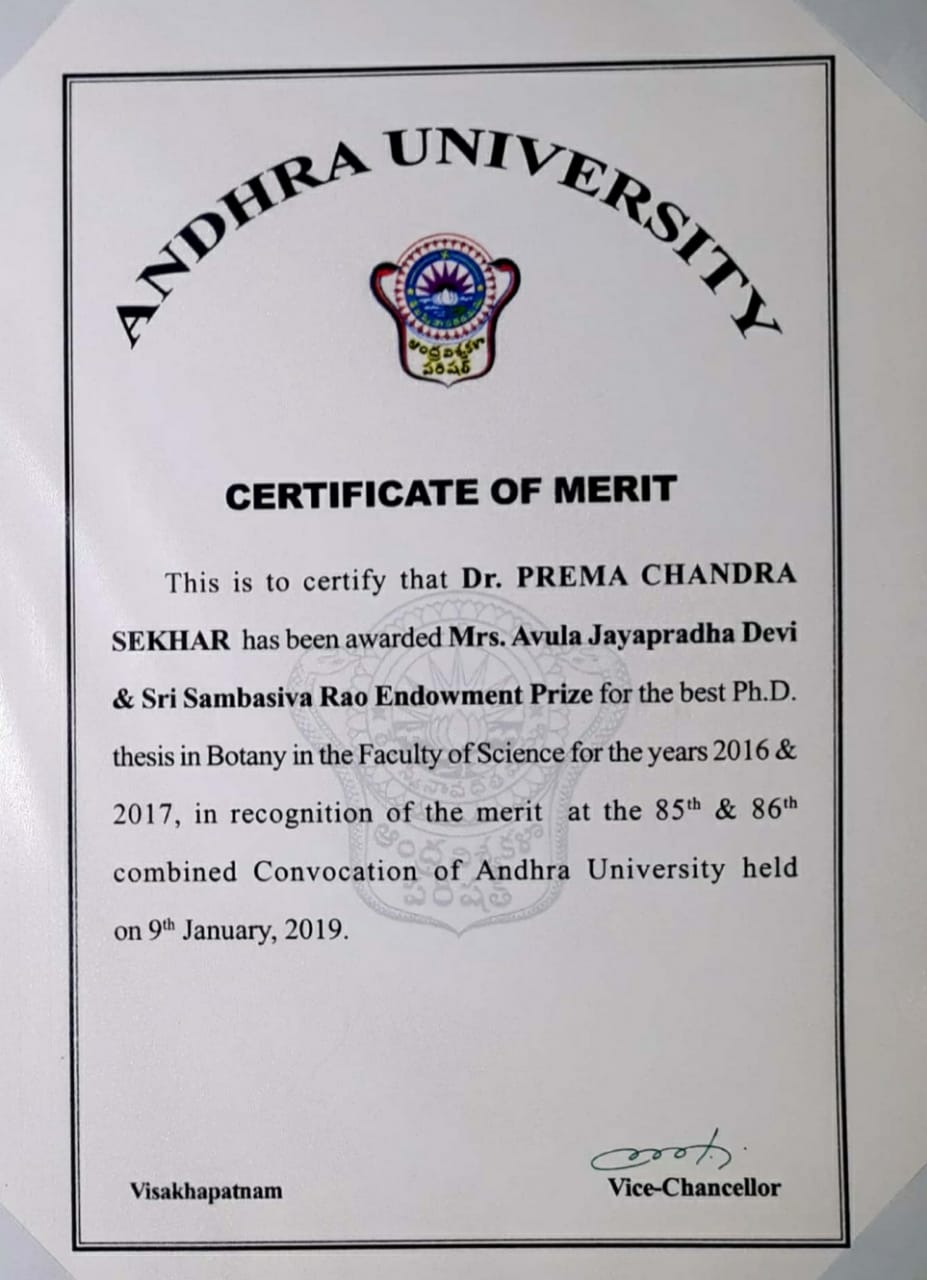 1 | 2019 | Best Thesis | Dr P Chandrasekhar | Andra University | Click Here | Click Here |