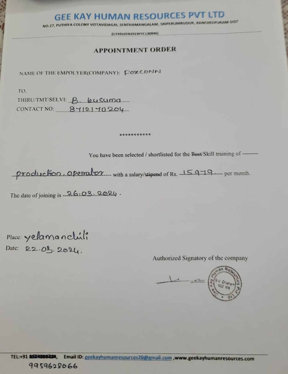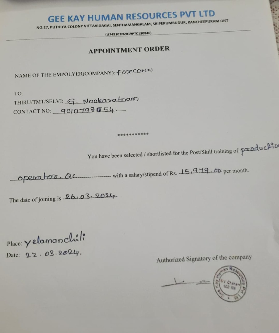 Sl.NO | Name of the Student | Group | Name of the Company | Salary | Supported Document |